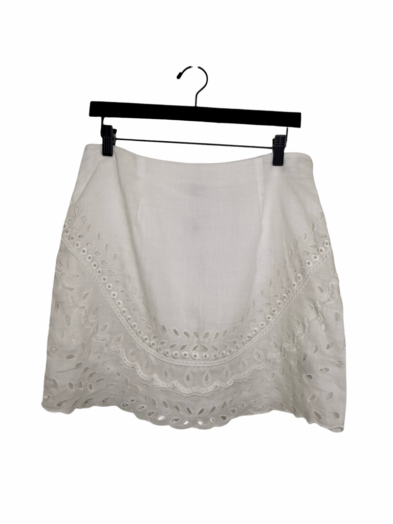 Stylish embroidered white cotton blouse and skirt set, perfect for casual outings or summer days.