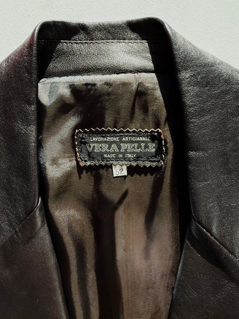 Stylish black leather blazer by Vera Pelle, crafted in Italy. Perfect for a sophisticated look.
